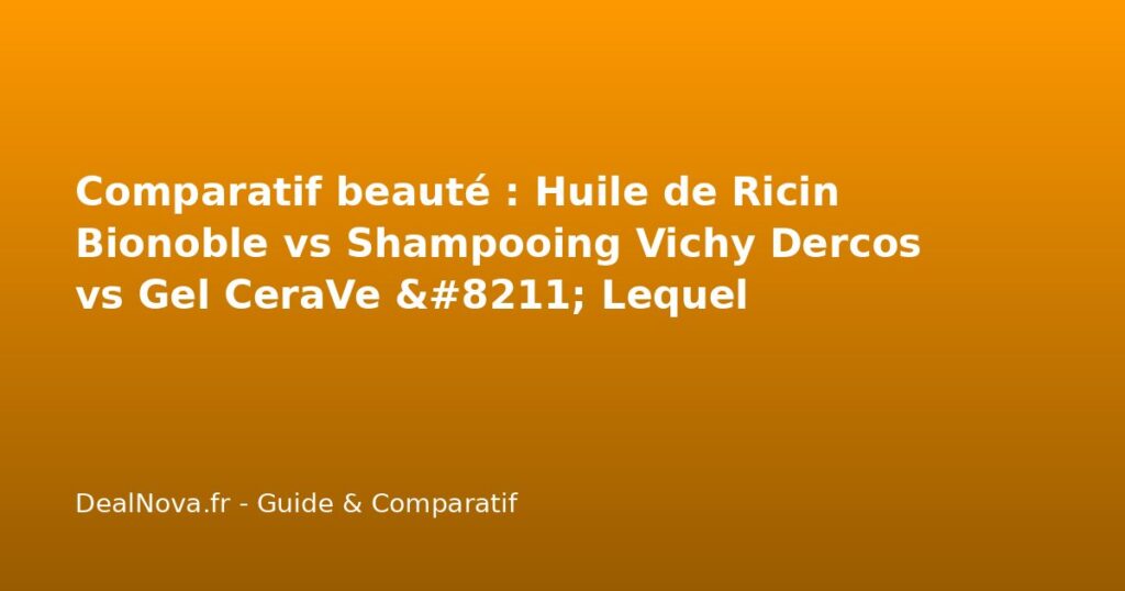 Cet article comparatif se propose d’analyser en profondeur l’Huile de Ricin Bio BIONOBLE, le Shampoing Anti-Pelliculaire DS de Vichy Dercos, et le Gel Moussant Anti-Imperfections de CeraVe. Nous détaillerons leurs spécificités, leurs points forts et leurs faiblesses, avant de vous offrir un tableau comparatif synthétique et un verdict clair par cas d’usage. Notre objectif : vous fournir une analyse honnête et experte pour vous aider à faire un choix éclairé en 2026, sans aucune exagération commerciale.